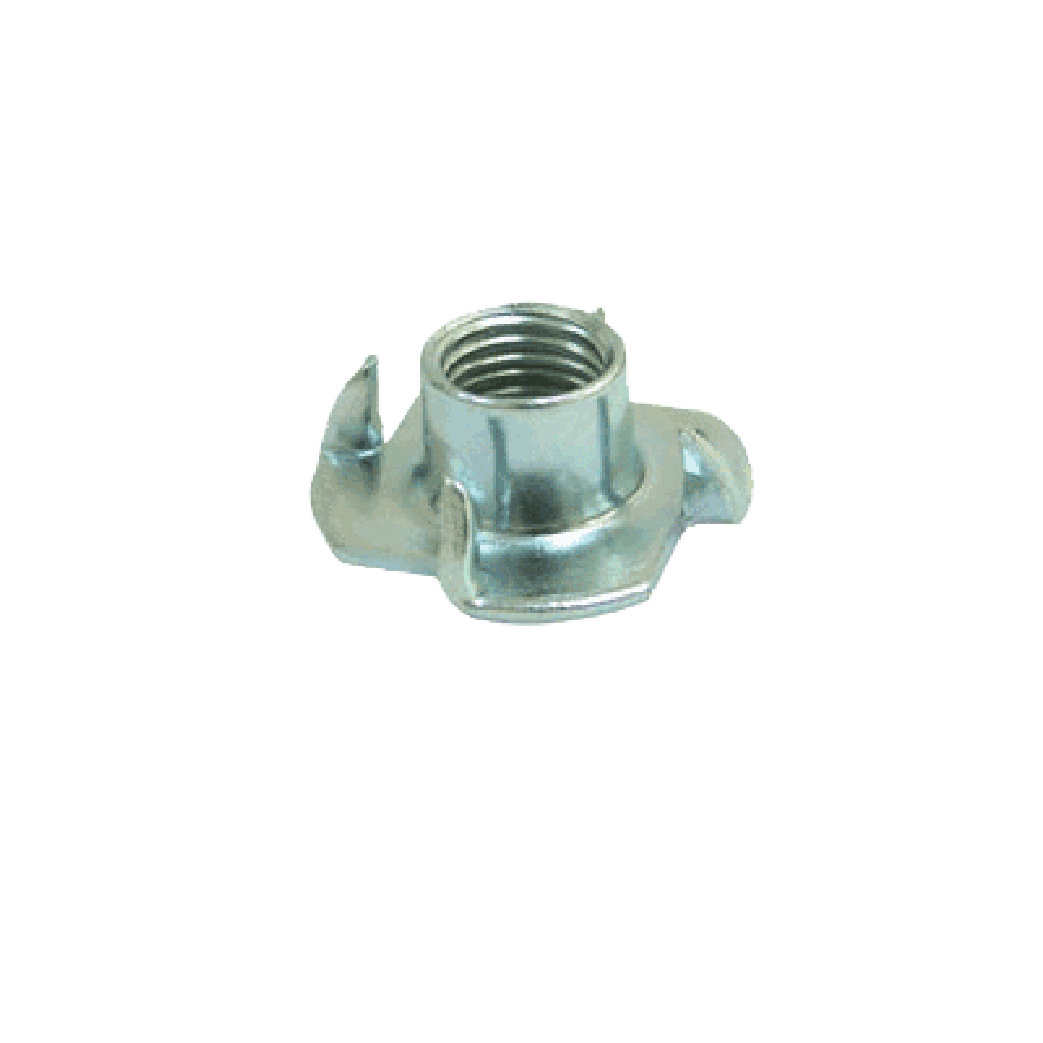 Teeth Nuts (T-Nuts) are fasteners with prongs that embed into wood or soft materials, providing a secure threaded connection from one side.