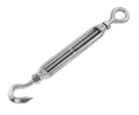 Turnbuckles (Hook/Eye Type) are adjustable devices used to tension and adjust the length of wire ropes, cables, or tie rods in rigging systems.